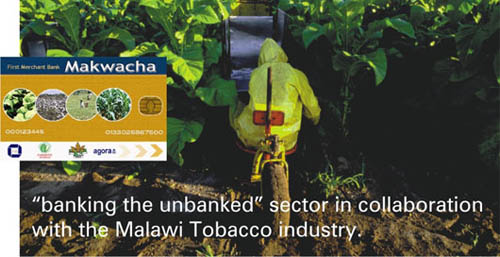 In an initiative to launch a differentiated financial product into the country, FMB deployed a unique approach to “banking the unbanked” sector in collaboration with the Malawi Tobacco industry. Tobacco is the leading cash crop in Malawi and the largest contributor to the much needed foreign exchange in this poor country. To tap into the treasury income generated from tobacco sales, the bank implemented the TranZact solution under a turn-key project to launch a co-branded card in partnership with TAMA - Tobacco Association of Malawi, a leading tobacco grower's co-operative and Farmers World Limited (FWL) & Agora, merchants with a country-wide network of stores that served the farmer community with agricultural supplies, chemicals, tools while also serving as a community convenience store. By implementing a path-breaking business model, FMB sought to deploy a multi-service payment product that delivered banking to the tobacco farmer with the convenience of a debit card that provided accessibility through a network of over 100 FWL merchant stores across the country. The TranZact project at FMB Malawi includes a network of 10 ATMs and approximately 100 GSM PoS terminals situated at each FWL merchant store. The TranZact EFT switching application was interfaced to the Tobacco Auction systems, thus allowing instant credit of tobacco sales directly onto the tobacco farmer's bank and card account. The farmer only needs to access the nearest FWL store to swipe his card, enter his secret PIN and access his daily sales statement that provides him accurate information of his available credit. The farmer can either withdraw cash at the FWL merchant sore or use his debit card to make any purchases. Today 30,000 tobacco farmers in Malawi have access to multi-functional, convenient and affordable banking services through a revolutionary business model that harnesses collaboration between members outside the financial industry, enabling scale and lowering infrastructure costs.