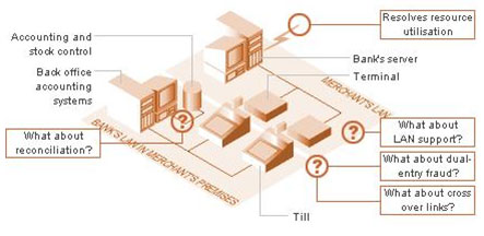 - Again the solution is separate from the retail infrastructure offering all concern associated with the stand-alone terminal solution.
